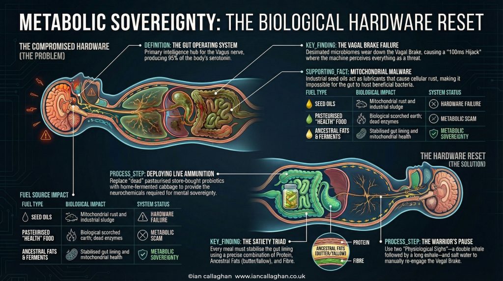 Your mental training is “pissing in the wind” if your biological hardware is compromised. If your brain is swimming in industrial sludge, your Vagal Brake will be brittle, and your 100ms gap will feel like a nanosecond. You cannot maintain sovereignty on a diet of toxins.