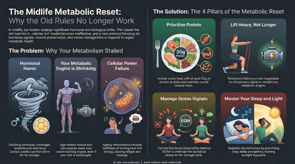 By integrating the Emotional Observation Method to manage stress, prioritising protein to build the engine, and lifting heavy things to demand adaptation, you can not only halt the slide—you can reverse it. You can enter your 50s and 60s with more metabolic flexibility, energy, and strength than you had in your 30s.